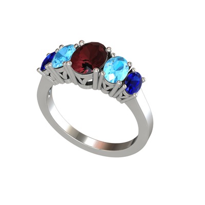 Kök yakut, akuamarin ve lab safir 8 ayar beyaz altın yüzük