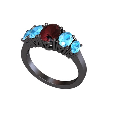Kök yakut ve akuamarin 925 ayar siyah rodyum kaplama gümüş yüzük