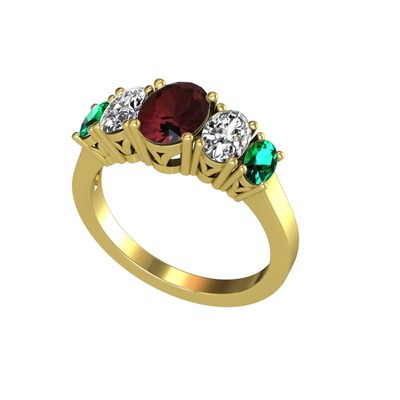 Kök yakut, beyaz zirkon ve yeşil kuvars 8 ayar altın yüzük