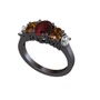 Kök yakut, dumanlı kuvars ve beyaz zirkon 925 ayar siyah rodyum kaplama gümüş yüzük