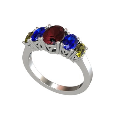 Kök yakut, lab safir ve peridot 14 ayar beyaz altın yüzük