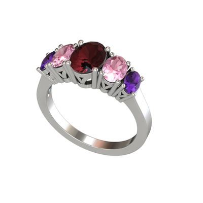 Kök yakut, pembe kuvars ve ametist 18 ayar beyaz altın yüzük