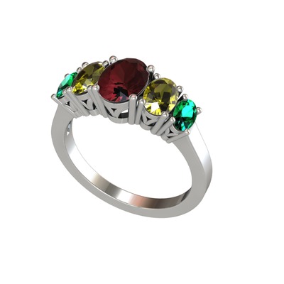 Kök yakut, peridot ve yeşil kuvars 8 ayar beyaz altın yüzük