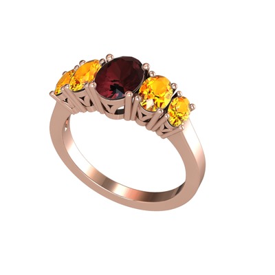 Kök yakut ve sitrin 14 ayar rose altın yüzük