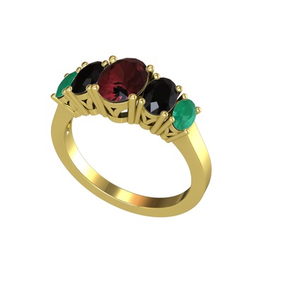 Kök yakut, siyah zirkon ve kök zümrüt 14 ayar altın yüzük