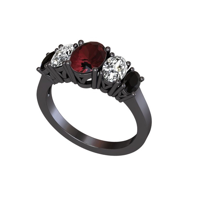 Kök yakut, swarovski ve siyah zirkon 925 ayar siyah rodyum kaplama gümüş yüzük