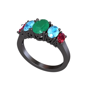Kök zümrüt, akuamarin ve rodolit garnet 925 ayar siyah rodyum kaplama gümüş yüzük