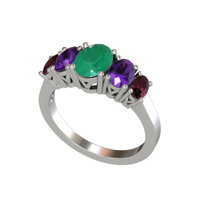 Kök zümrüt, ametist ve kök yakut 925 ayar gümüş yüzük
