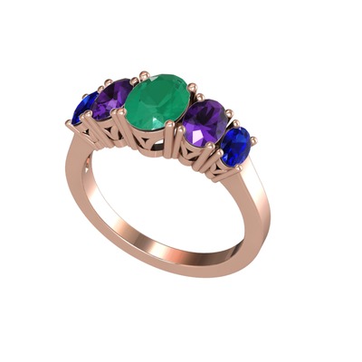Kök zümrüt, ametist ve lab safir 8 ayar rose altın yüzük