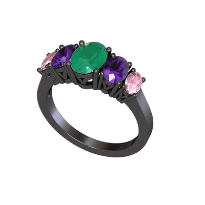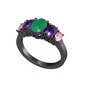Kök zümrüt, ametist ve pembe kuvars 925 ayar siyah rodyum kaplama gümüş yüzük