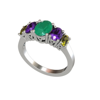 Kök zümrüt, ametist ve peridot 925 ayar gümüş yüzük
