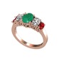 Kök zümrüt, beyaz zirkon ve garnet 925 ayar rose altın kaplama gümüş yüzük