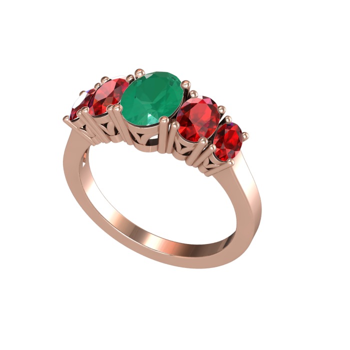 Kök zümrüt ve garnet 8 ayar rose altın yüzük