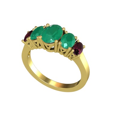 Kök zümrüt ve kök yakut 18 ayar altın yüzük