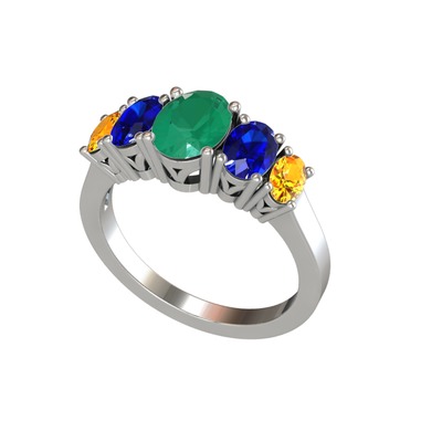 Kök zümrüt, lab safir ve sitrin 14 ayar beyaz altın yüzük