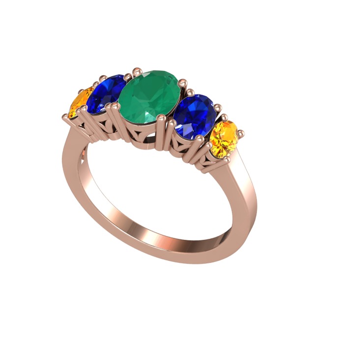 Kök zümrüt, lab safir ve sitrin 14 ayar rose altın yüzük