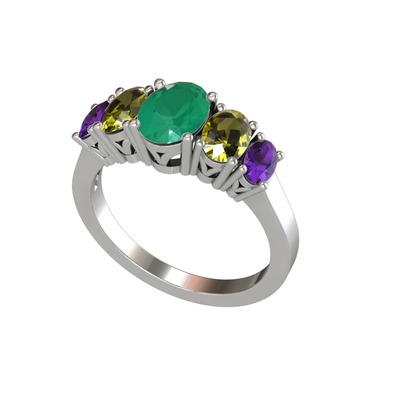 Kök zümrüt, peridot ve ametist 8 ayar beyaz altın yüzük