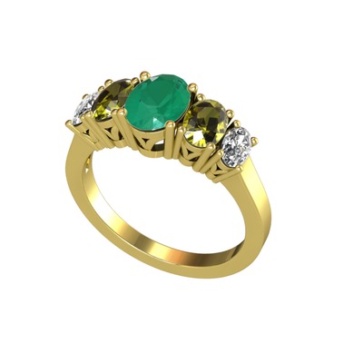 Kök zümrüt, peridot ve swarovski 18 ayar altın yüzük