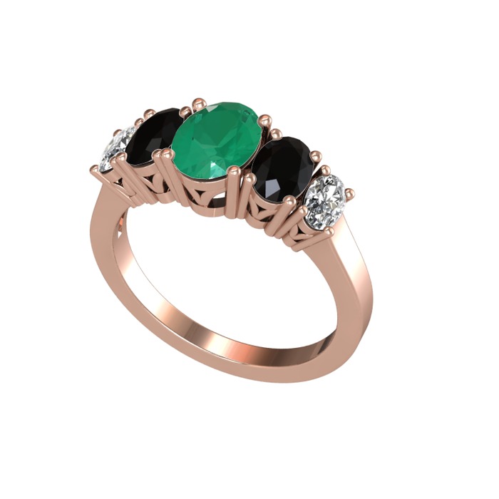 Kök zümrüt, siyah zirkon ve beyaz zirkon 18 ayar rose altın yüzük