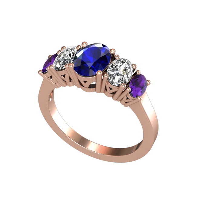 Lab safir, beyaz zirkon ve ametist 14 ayar rose altın yüzük