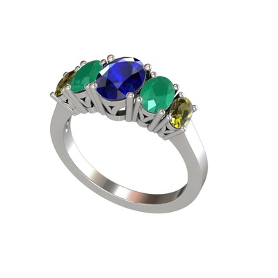 Lab safir, kök zümrüt ve peridot 18 ayar beyaz altın yüzük
