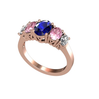 Lab safir, pembe kuvars ve beyaz zirkon 14 ayar rose altın yüzük