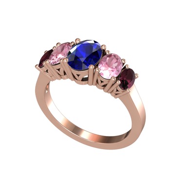 Lab safir, pembe kuvars ve kök yakut 8 ayar rose altın yüzük