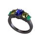 Lab safir, peridot ve kök zümrüt 925 ayar siyah rodyum kaplama gümüş yüzük