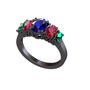 Lab safir, rodolit garnet ve yeşil kuvars 925 ayar siyah rodyum kaplama gümüş yüzük