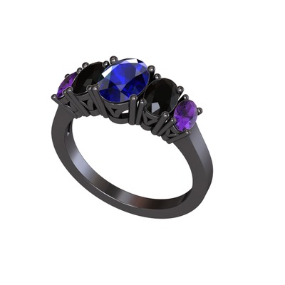 Lab safir, siyah zirkon ve ametist 925 ayar siyah rodyum kaplama gümüş yüzük