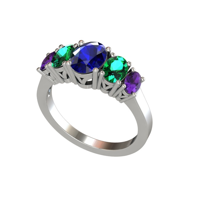 Lab safir, yeşil kuvars ve ametist 14 ayar beyaz altın yüzük