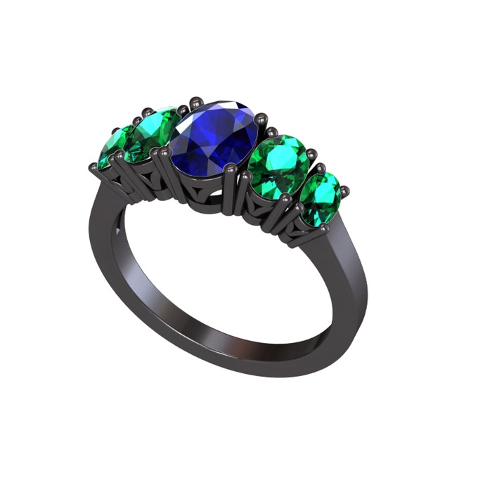 Lab safir ve yeşil kuvars 925 ayar siyah rodyum kaplama gümüş yüzük