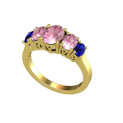 Pembe kuvars ve lab safir 18 ayar altın yüzük