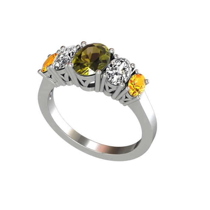 Peridot, beyaz zirkon ve sitrin 8 ayar beyaz altın yüzük