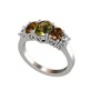 Peridot, dumanlı kuvars ve beyaz zirkon 14 ayar beyaz altın yüzük