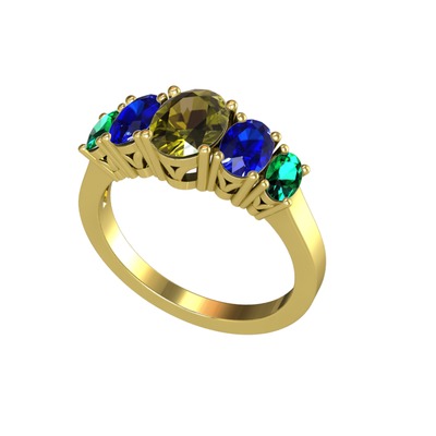 Peridot, lab safir ve yeşil kuvars 18 ayar altın yüzük