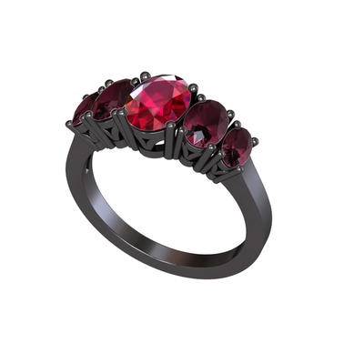 Rodolit garnet ve kök yakut 925 ayar siyah rodyum kaplama gümüş yüzük