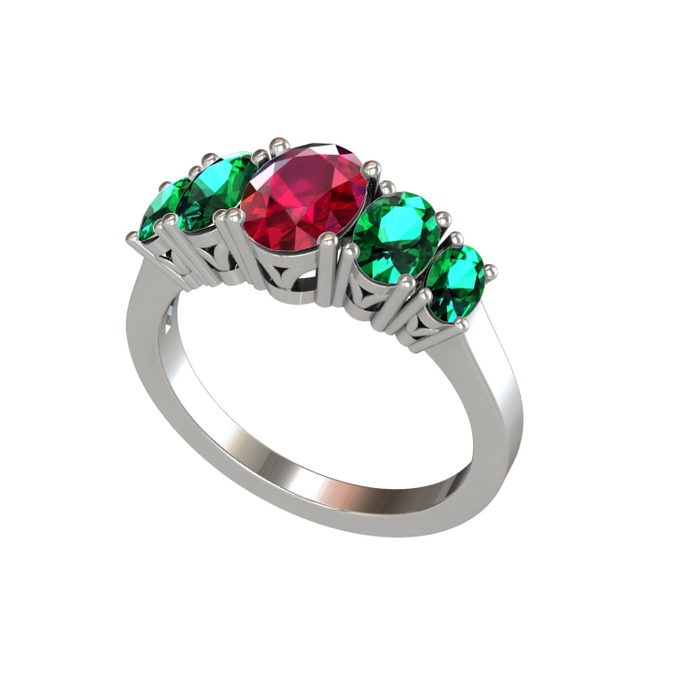 Rodolit garnet ve yeşil kuvars 18 ayar beyaz altın yüzük