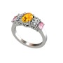 Sitrin, beyaz zirkon ve pembe kuvars 14 ayar beyaz altın yüzük