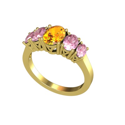 Sitrin ve pembe kuvars 14 ayar altın yüzük
