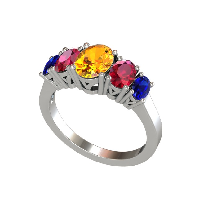 Sitrin, rodolit garnet ve lab safir 18 ayar beyaz altın yüzük