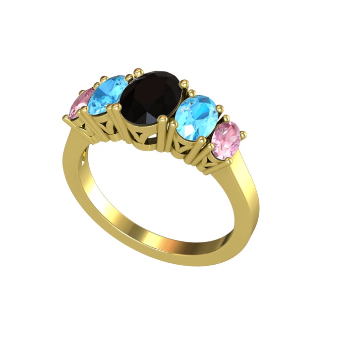 Siyah zirkon, akuamarin ve pembe kuvars 18 ayar altın yüzük