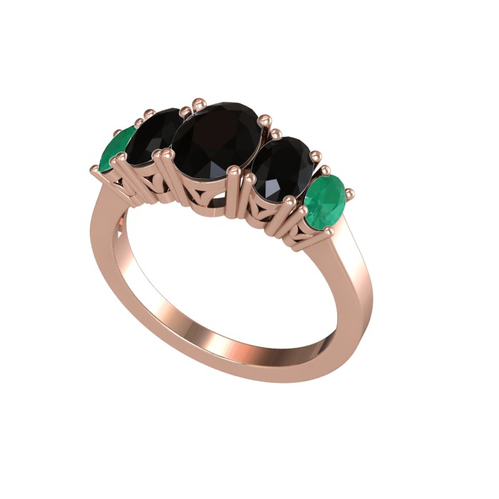 Siyah zirkon ve kök zümrüt 925 ayar rose altın kaplama gümüş yüzük