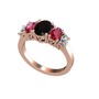 Siyah zirkon, rodolit garnet ve beyaz zirkon 14 ayar rose altın yüzük