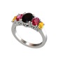 Siyah zirkon, rodolit garnet ve sitrin 8 ayar beyaz altın yüzük