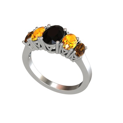 Siyah zirkon, sitrin ve dumanlı kuvars 8 ayar beyaz altın yüzük