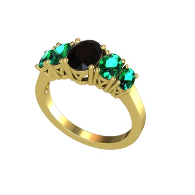 Siyah zirkon ve yeşil kuvars 8 ayar altın yüzük