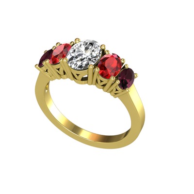 Swarovski, garnet ve kök yakut 18 ayar altın yüzük