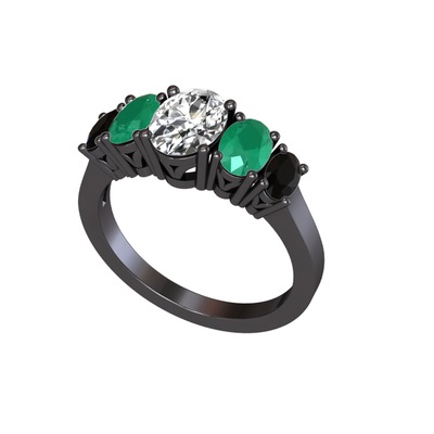 Swarovski, kök zümrüt ve siyah zirkon 925 ayar siyah rodyum kaplama gümüş yüzük