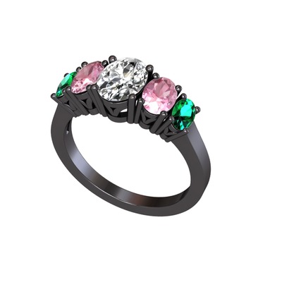 Swarovski, pembe kuvars ve yeşil kuvars 925 ayar siyah rodyum kaplama gümüş yüzük